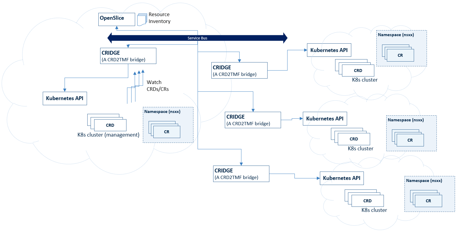 Why the CRIDGE name? We wanted to build a service that maps TMF models to CRDs; a kind of a CRD to TMF bridge. Therefore CRIDGE was born.