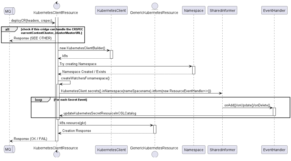 • The CRD is transformed to OSL Kubernetes domain model: method kubernetesClientResource.KubernetesCRD2OpensliceCRD