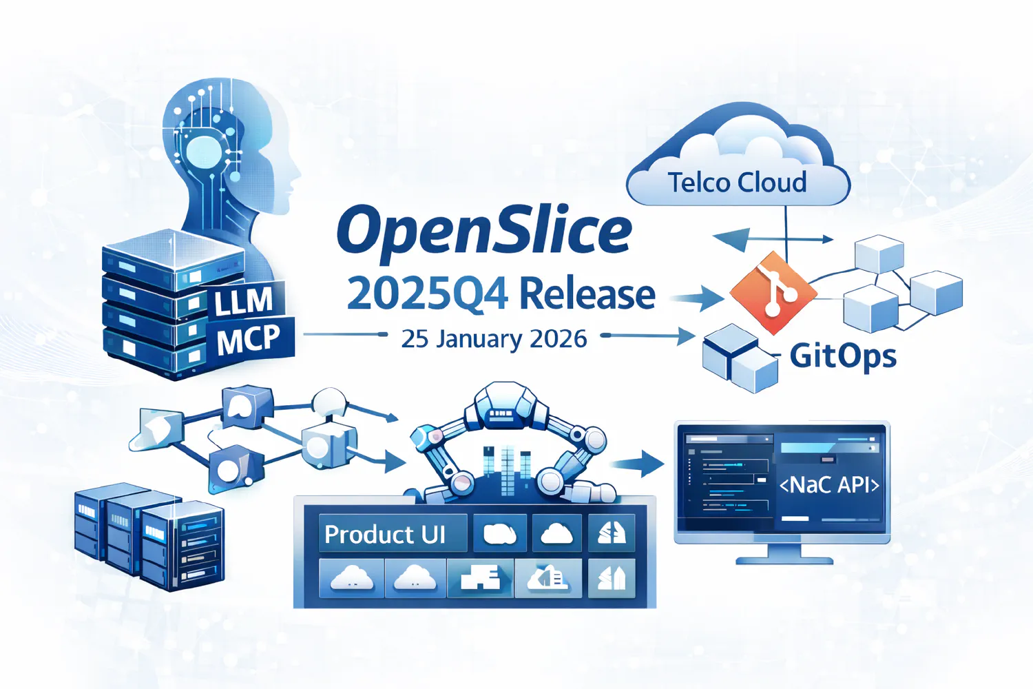 In 2025Q4, AI moves from the experimental periphery to the operational core. The OpenSlice MCP Server has matured way beyond its pilot phase, now featuring authentication and improved tool exposure. Driven by the need for data sovereignty and operational flexibility, we are introducing the OpenSlice MCP Backend. This new project natively integrates with the MCP Server but shifts the intelligence inward by leveraging local LLM deployments. Users can now connect to and fine-tune models within their own infrastructure. This stack powers the new OpenSlice AI Assistant, providing a seamless, chat-driven interface for platform tools. More importantly, we have implemented Agentic Orchestration. OpenSlice can now invoke a chain of internal or external Agents throughout the service lifecycle, transforming high-level insights into executable network actions. We see this as a critical milestone toward achieving true Autonomous Networks.